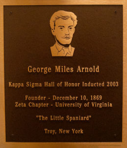 Brother Arnold was the first Grand Master of the Zeta Chapter. He began a course of medicine at the University of Virginia in 1870 but withdrew from Virginia in February 1871, to enter the Medical College of New York where he completed his medical education. Founder Arnold lived at East Range while a student at the University of Virginia.