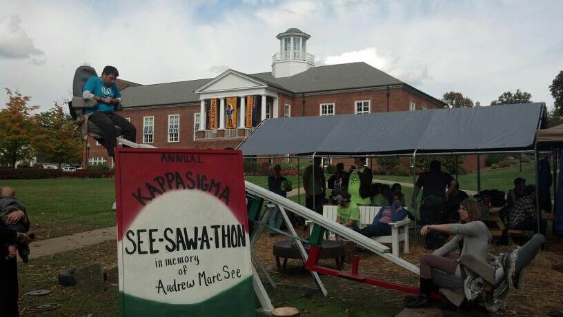 Members of the Xi-Epsilon Chapter at Thiel College will begin their 17th annual See-Saw-A-Thon at noon on Thursday, Oct. 10, through noon Sunday, Oct. 13 . Members will ride a 10-foot see-saw during the duration of the event to raise money for a local leukemia patient. The event raises $3,500 annually.