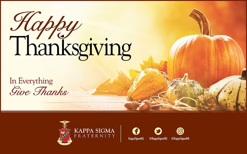 On this Thanksgiving we have so much to be thankful for, including the gift of Kappa Sigma, the common bond which we each share.