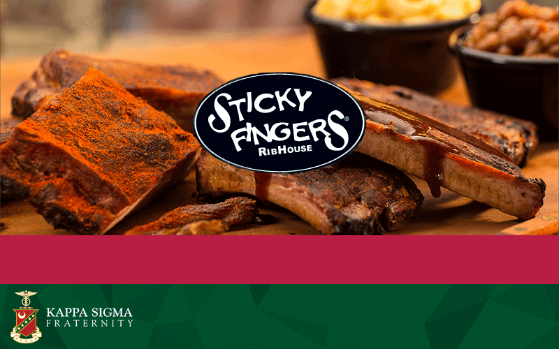 Come and enjoy the fellowship of brothers at Sticky Fingers Charleston after work on November 13, 2015. Meet the newly elected Supreme Executive Committee, and network with other Kappa Sigma’s. The reception will begin at 5:00 PM on the rooftop. Please RSVP by November 10th.