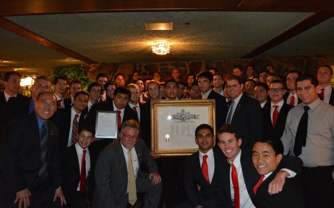The chapter held its installation banquet at the historic Madonna Inn where family and friends gathered to celebrate the accomplishments of Kappa Sigma’s newest members. Among the 56 men initiated were two legacies – Jack Foy, whose father Jon is a 1977 initiate of the Alpha-Psi Chapter (University of Nebraska-Lincoln), and Cameron Sholz, whose father Scott is a 1990 initiate of the Theta-Iota Chapter (San Jose State University).