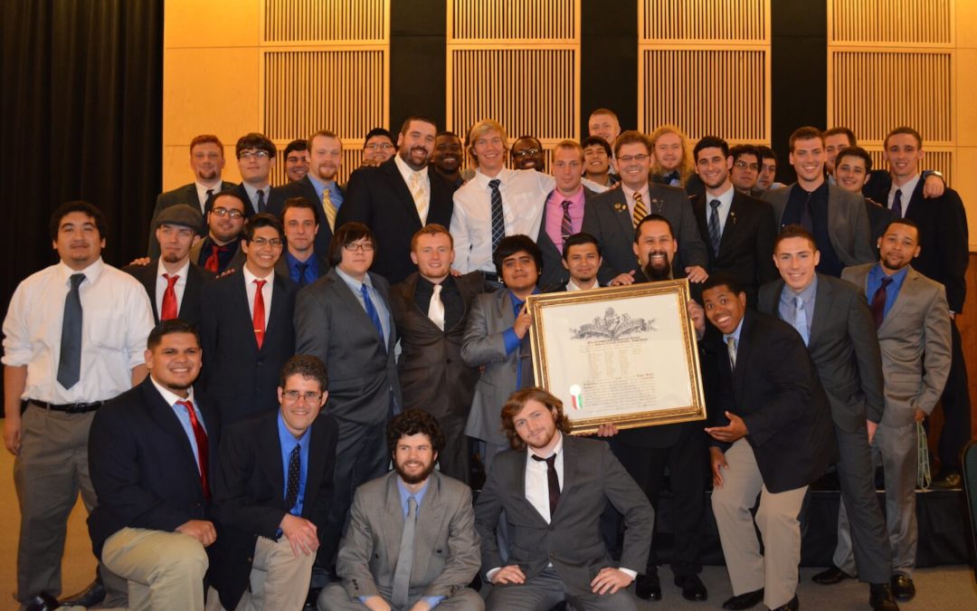 The Tau-Beta Chapter was installed at Humboldt State University on April 26, 2014, in Arcata, Calif. Tau-Beta became the 388th chapter chartered in Kappa Sigma’s history. A total of 38 men were initiated into the chapter, including three alumni who graduated from the colony in 2013. The Pi-Upsilon (Academy of Arts), Theta-Iota (San Jose State) and Sigma-Omega (Santa Clara) chapters each sent ritual teams to install Tau-Beta. The chapter is led by Grand Master Ian Mason and is located in the Bay Area/Pacific Coast District where Brother Jeffrey Munowitch (Epsilon-Theta, University of California-Santa Barbara, ’06) serves as District Grand Master. Worthy Grand Procurator Derek L. Marchman delivered the keynote address at the chapter’s installation banquet that included family, friends and university administrators.