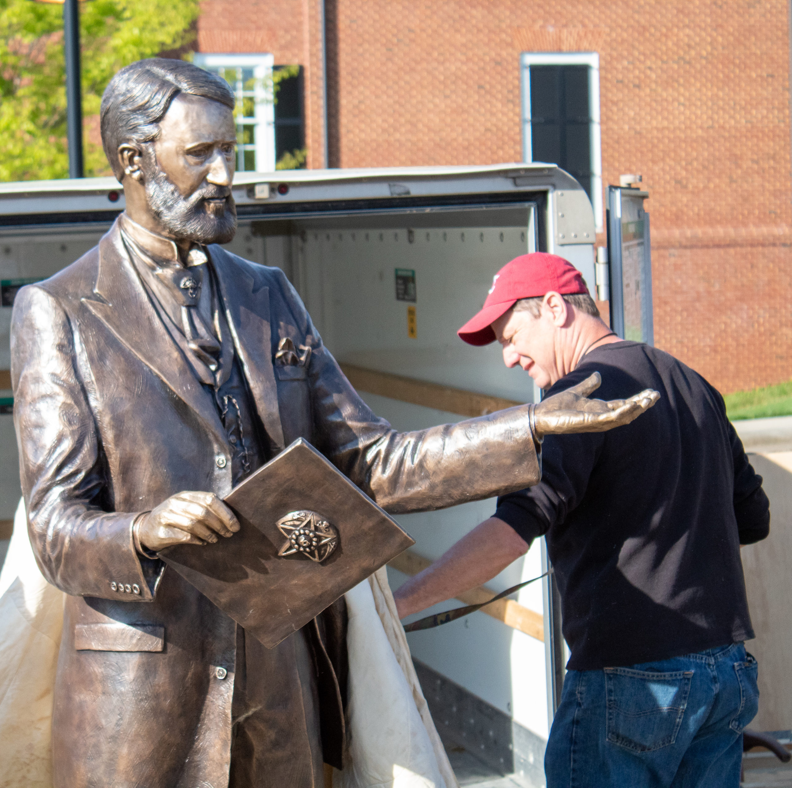 The statue was created by world-renowned sculptor Ben Watts (Alpha-Upsilon, Millsaps College, ‘78) who worked tirelessly to create a remarkable lifelike image of Kappa Sigma’s most significant initiate in its storied 150-year history. Watts’ work includes portraits of football greats, politicians, musicians, and other prominent people. His newest piece, the Stephen Alonzo Jackson monument, was unveiled on the evening of July 26, 2019. Watts was honored as Kappa Sigma Fraternity’s Sculptor Emeritus at the 150th celebration and during the unveiling of the life-sized sculpture of Jackson.