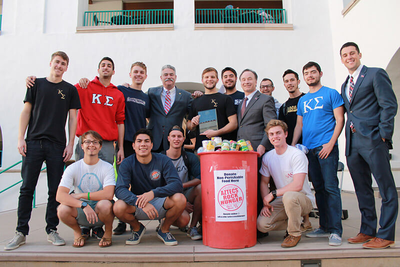 The Kappa Sigma chapter at San Diego State University recently took part in their university “Aztecs Rock Hunger” food drive. Led by their A Greater Cause chairman Danny Dyer, the chapter was able to raise over $3,000 for the Jacobs & Cushman Food Bank.