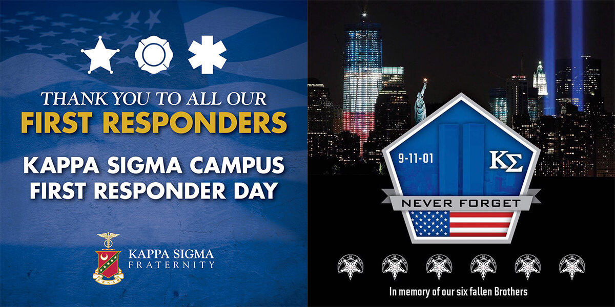 Today we reflect on those tragic events that took place 16 years ago. In remembering the lives we lost, we also honor those first responders that valiantly fought to save them. These heroes fight every day to protect our communities and that is why last year we established 9/11 as Kappa Sigma First Responder Day. Today, Kappa Sigma recognizes our campus and community first responders for the work they do day in and day out to keep us safe. Thank you for your tireless service. #KappaSigmaCares