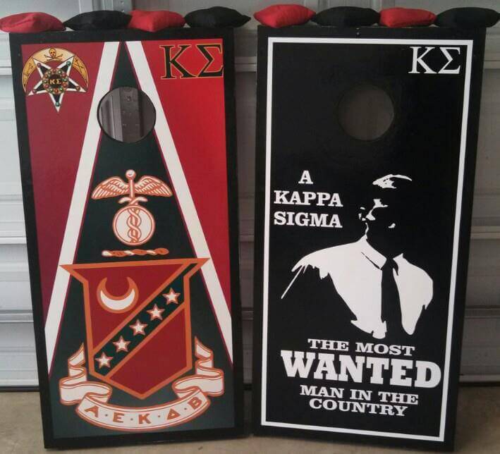 The Xi-Upsilon Chapter at Texas A&M University-Commerce is raffling a set of Kappa Sigma cornhole boards to benefit the Kappa Sigma Military Heroes Campaign, with the drawing to be held in September. The boards are built to the official specs of the American Cornhole Association, and all money raised from the raffle will be donated to the campaign. Raffle tickets are $5 each.